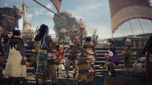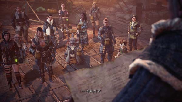 ハンターの凱旋に湧き上がる拠点メンバー