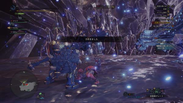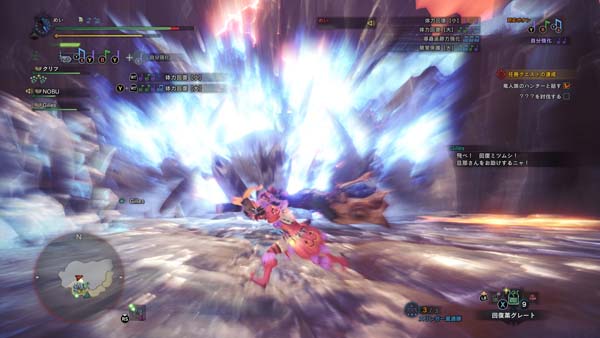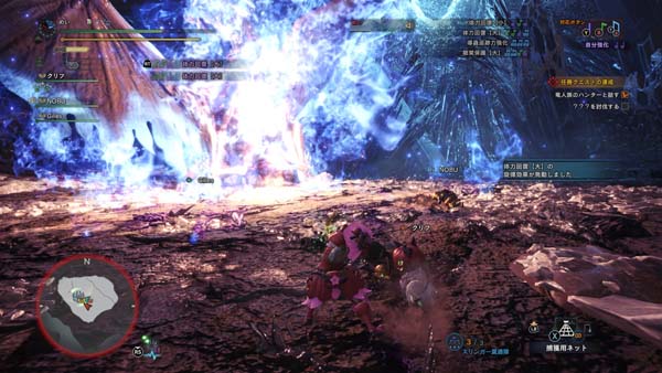 ハンターの凱旋に湧き上がる拠点メンバー
