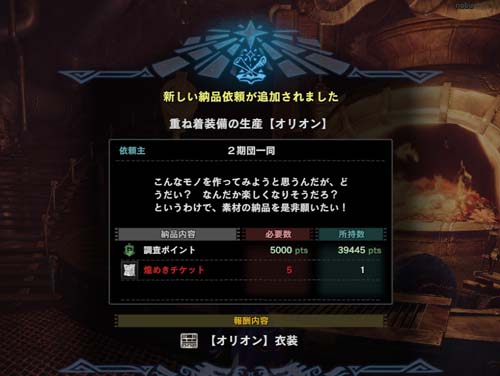 ハンター用装備が作れるとのこと。